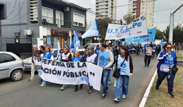 La Unión de Trabajadores de la Educación de La Pampa (UTELPa) lleva a cabo este miércoles un paro de 24 horas por aumento salarial y reclamos laborales. Según detallaron desde el gremio, el acatamiento supera el 95% en gran parte de la provincia. Los docentes se movilizan por el centro de Santa Rosa en reclamo de mejoras salariales y de condiciones laborales. Desde UTELPa detallaron que el acatamiento al paro es «superior al 95%».La medida gremial se tomó en el Congreso Extraordinario tras no haber oferta salarial y, desde las 10 de la mañana, se concentraron en la plaza San Martín de Santa Rosa para luego movilizar hacia el Centro Cívico, donde leerán un petitorio que luego entregarán a las autoridades provinciales. Acompañan docentes de varias seccionales del interior provincial, que arribaron esta mañana a Santa Rosa. «Estamos en la calle, movilizando, reclamando una mejora salarial. Es muy difícil llegar a fin de mes con un solo cargo», sostuvo la secretaria general de UTELPa, Rosana Gugliara.«Defendemos la escuela pública, de calidad y tiene que haber financiamiento. Sabemos que no es responsabilidad de este gobierno provincial la quita del FONID, pero tenemos que discutir alguna suma para compensar esa perdida. Nosotros defendemos el trabajo docente y queremos discutir en nuestra paritaria una oferta salarial porque necesitamos sumas que permitan recuperar el salario», agregó la gremialista.Además, cuestionó la actitud del gobierno de Javier Milei hacia el sector educativo. «Sabemos que el gobierno nacional desfinancia la educación, la calidad educativa. Desde que Milei llego el gobierno hay un brutal desfinanciamiento a todos los sectores, sobre todo a la educación, pero es responsabilidad de los gobiernos provinciales dar respuestas», completó Gugliara.El paro se realiza a la espera de la reunión paritaria, convocada para el 15 de octubre, donde el gobierno provincial promete mejorar la oferta salarial.Entre las demandas del gremio docente se encuentran una recomposición salarial acorde a la canasta básica, el mejoramiento de las condiciones laborales, desburocratización de la tarea docente y el cese de sanciones arbitrarias y desproporcionadas
