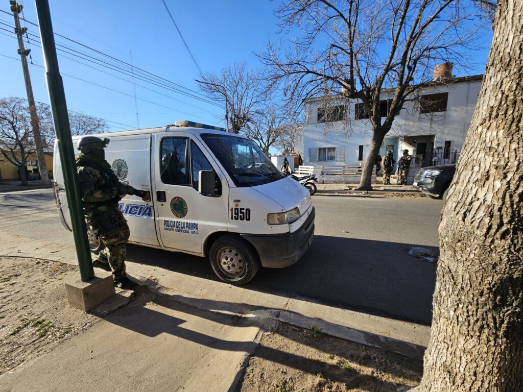 Un efectivo policial del Grupo Especial sufrió una caída de entre cuatro y cinco metros de altura durante un allanamiento realizado esta mañana en un departamento ubicado en la calle 40 y Yancamil, en General Pico. El hecho ocurrió minutos antes de las 10:00 hs., en un patio interno de la vivienda.El efectivo fue rápidamente atendido por el Servicio de Emergencias Médicas (SEM) y trasladado al Hospital Gobernador Centeno. Si bien fuentes extraoficiales indicaron que el policía no presentaba lesiones visibles, la altura de la caída genera preocupación.En el lugar se encuentran presentes la Jefa de la Unidad Regional II, Vanina Fileni, y el segundo jefe, González Palleres, junto a efectivos de diversas dependencias, incluyendo Seguridad Rural y el Grupo Especial.El departamento allanado sería el primero de un complejo, y la caída se habría producido en un patio interno con una parrilla. Se aguarda información oficial sobre el estado de salud del efectivo policial.