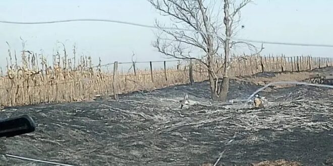 El lunes al mediodía un incendio de grandes dimensiones se originó en un predio rural del ejido de Parera a unos 6 kilómetros al sur de la localidad, que provocó millonarias pérdidas económicas a varios productores que tienen sus predios en la zona y movilizó a bomberos de cuatro cuarteles.Según la información recabada por este portal, el fuego se originó a partir de un productor que se encontraba quemando pastizales y cuando parecía que estaba controlado, el fuego volvió a encenderse, y las llamas se expandieron rápidamente a predios lindantes, debido a las condiciones climáticas y la sequía reinante.Esto motivó el trabajo de decenas de bomberos de cuatro cuarteles de la zona (Parera, Caleufú, Rancul e Ingeniero Luiggi) que pusieron a disposición su personal y unidades, más productores con maquinarias y vecinos que solidariamente se acercaron a colaborar para controlar el voraz incendio.Lamentablemente los daños económicos en alambrados, instalaciones y cultivos, fueron millonarios para productores que tienen sus predios rurales en esa zona.Ante este tipo de conductas negligentes, desde Defensa Civil recordaron que «la quema de pastizales se permitirá hasta el 25 de septiembre» y «es obligatorio solicitar un permiso y notificar el día que se va a realizar para evitar estas consecuencias».Zonal Noticias consultó a fuentes policiales, que indicaron que «un productor radicó una denuncia por el daño en alambrados y alfalfa».Además este portal consultó a otro de los productores afectados, de la localidad de Ingeniero Luiggi que tiene uno de sus predios en la zona donde se produjo este voraz incendio y expresó «mañana vamos a hacer una evaluación detallada, vamos a medir con un dron, pero son entre 200 y 250 hectáreas de maíz las afectadas por el fuego».«Todavía no medí bien los metros de alambre, pero se quemaron más de mil metros, tranqueras, tirantes, no obstante el daño mayor está en el cultivo de maíz próximo a cosechar, donde esperábamos un importante rinde», explicó.«El daño económico que nos hizo el fuego es importante», se lamentó el productor luiggense, molesto por lo ocurrido. «Es una gran irresponsabilidad, cuando uno prende fuego, y más seco como está, se convierte en combustible, asique no se puede descuidar», remarcó.El vecino detalló que a otros productores también los afectó en rastrojos y alambre, asique «evaluaremos cómo seguimos», concluyó.