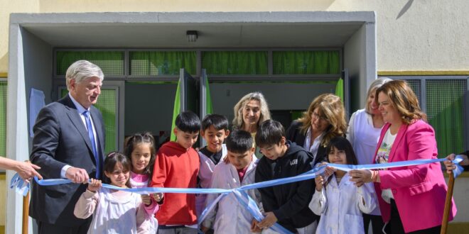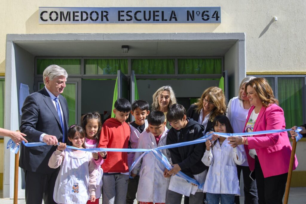 Sabemos que es difícil, pero hay que ratificar el trabajo en conjunto con toda la comunidad educativa. En esto hemos logrado una sociedad realmente integral y mancomunada, y en ese sentido seguiremos trabajando juntos”, expresó Ziliotto, reafirmando el compromiso del Gobierno provincial con la educación pública y la igualdad de oportunidades.Alonso: “Un espacio de encuentro y de cuidado”La intendenta Fernanda Alonso celebró la inauguración y destacó que se trataba de una demanda largamente esperada por el barrio: “Hoy es un día especial, vamos a vivir la posibilidad de que ya empiecen a utilizar este comedor, que era una necesidad concreta de tantos años que tenía la escuela”.Agradeció al Gobierno provincial y a la ministra de Educación por la rápida respuesta: “Al momento en que estuvo el planteo y la necesidad, no dudaron en decidir y en direccionar los recursos para que hoy sea una realidad que la Escuela 64 tenga este espacio”.Remarcó que el nuevo edificio no solo servirá para garantizar la alimentación de los alumnos, sino también para fortalecer los lazos comunitarios: “Este espacio va a tener una función específica, pero también va a ser un espacio de desarrollo y recreación que se va a abrir a la comunidad. Ahí vamos a poder encontrar ese fortalecimiento que necesitamos de las relaciones entre los vecinos y las vecinas del barrio”.En ese sentido, subrayó que “hay un Estado que piensa en estas cuestiones; no es solo venir a aprender, es también generar relaciones que son para toda la vida”.Sorba: “Un sueño hecho realidad”La directora de la institución, Silvia Sorba, calificó la jornada como “un día de celebración y alegría para toda la comunidad educativa” y repasó la historia del establecimiento. “Inaugurar una obra es importante, pero inaugurar una obra en una escuela tiene algo muy especial”, expresó.Relató que la Escuela N° 64, fundada en 1909, funciona en su actual edificio desde 1982 y desde 2010 es de jornada completa. Actualmente cuenta con 120 alumnos, 21 docentes y 6 no docentes, además de un anexo del JIN N° 1 con 60 niños de salas de 3, 4 y 5 años.Recordó que el comedor funcionaba hasta ahora en un espacio cedido por el municipio a dos cuadras del edificio. “Durante casi dos años de obra los chicos preguntaban todos los días cuándo estaría listo el comedor. Hoy podemos decir que ese día llegó: tenemos un lugar amplio, confortable y dentro de la institución, un punto de encuentro que promueve la convivencia y el desarrollo social de los niños”, destacó.La directora agradeció el acompañamiento del Ministerio de Educación y del municipio durante todo el proceso y convocó a la comunidad a cuidar las instalaciones: “El comedor escolar es un logro colectivo y también es, desde aquí en adelante, un compromiso compartido. Invitamos a alumnos, docentes, familias y vecinos a valorar este espacio, que será recordado por generaciones”.