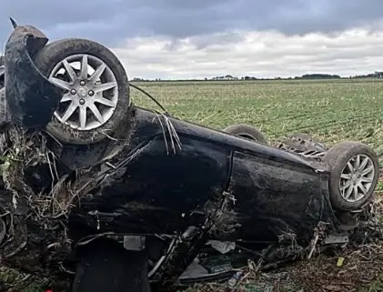 El despiste y vuelco se produjo esta mañana alrededor de las 8 horas en la Ruta provincial 2, en cercanías del acceso a Embajador Martini. En el vehículo Peugeot 308 circulaban cuatro jóvenes con domicilio en Alta Italia que regresaban procedentes de la localidad de Parera. Todos están fuera de peligro.Según lo informado, el automóvil Peugeot 308 negro mordió la banquina, se cruzó de carril, impactó contra una alcantarilla, se despistó de la ruta, atravesó un alambrado y terminó volcado con las cuatro ruedas hacia arriba dentro de un predio rural.Los cuatro jóvenes habían estado participando en el baile de egresados de Parera, y regresaban a su localidad.Cuando la policía llegó al lugar, los jóvenes ya habían salido por sus propios medios.Pese a la virulencia del impacto, los cuatro ocupantes del rodado, de entre 20 y 25 años están todos fuera de peligro, informaron a Zonal Noticias fuentes consultadas.No obstante el conductor y otro de los ocupantes manifestaron «fuertes dolores en sus piernas y en el pecho», informó el jefe policial de Alta Italia Nicolás Fernández.Tres de los jóvenes fueron trasladador a General Pico para practicarle algunos estudios más complejos, y un cuarto quedó en observación en el hospital de Ingeniero Luiggi.En el lugar del siniestro trabajó personal de salud de Ingeniero Luiggi, Alta Italia y Embajador Martini junto a efectivos policiales y bomberos voluntarios.Si bien no se precisaron las causas del siniestro, una de las hipótesis es que el conductor podría haberse quedado dormido.Se llevaron adelante las pericias policiales para precisar fehacientemente las causas del siniestro. Según lo informado, el test de alcoholemia realizado al conductor arrojó resultado positivo.