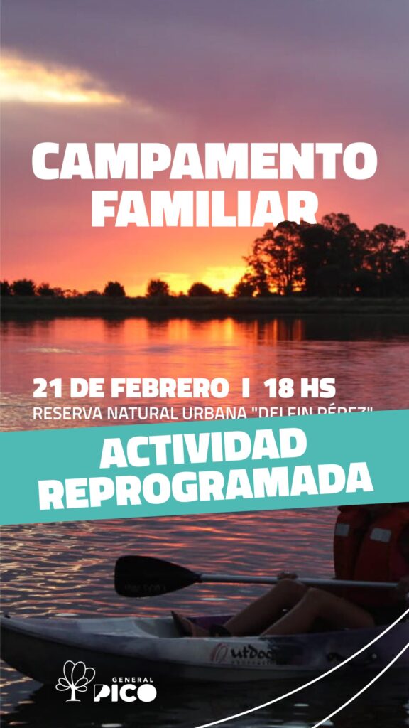 La Municipalidad de General Pico informó que, debido al pronóstico de lluvias emitido por el Servicio Meteorológico Nacional para la ciudad durante este fin de semana, el Campamento de Verano Familiar que iba a desarrollarse en la Reserva Urbana será reprogramado.Con el objetivo de cuidar a las personas inscriptas en esta propuesta recreativa y educativa, y teniendo en cuenta el despliegue logístico necesario para llevarla a cabo, las autoridades consideraron menester tomar las precauciones necesarias y trasladar la fecha para evitar cualquier tipo de inconveniente.