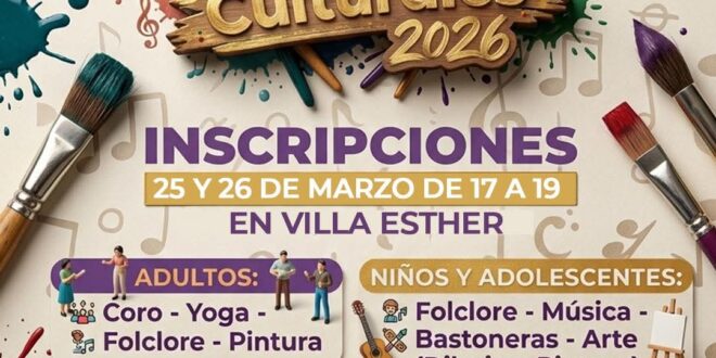 📅 Inscripciones: 25 y 26 de marzo🕔 De 17 a 19 hs📍 Villa Esther👉 Propuestas para todas las edades¡Sumate y participá! ✨
