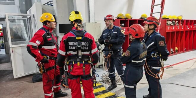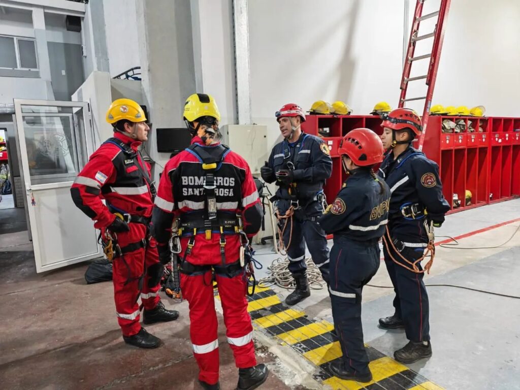 Instructores del Cuartel Central de Bomberos de la Policía de la provincia de La Pampa, en conjunto con integrantes del Cuartel de Bomberos Voluntarios de Puerto Madryn, llevaron adelante una intensa jornada de capacitación y nivelación centrada en el rescate técnico con cuerdas.